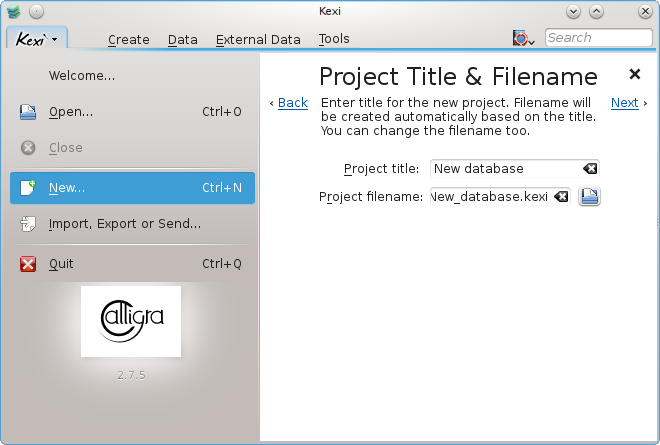 On the New Project page, under Blank Projects section, choose Blank Database.