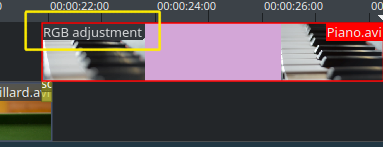 El «Piano» es pot acolorir mitjançant l'addició d'un efecte al mateix. Seleccioneu el clip de piano, a continuació, feu doble clic a l'efecte Ajust RGB a la Llista d'efectes. Si no és visible, ho podeu aconseguir a través de → .