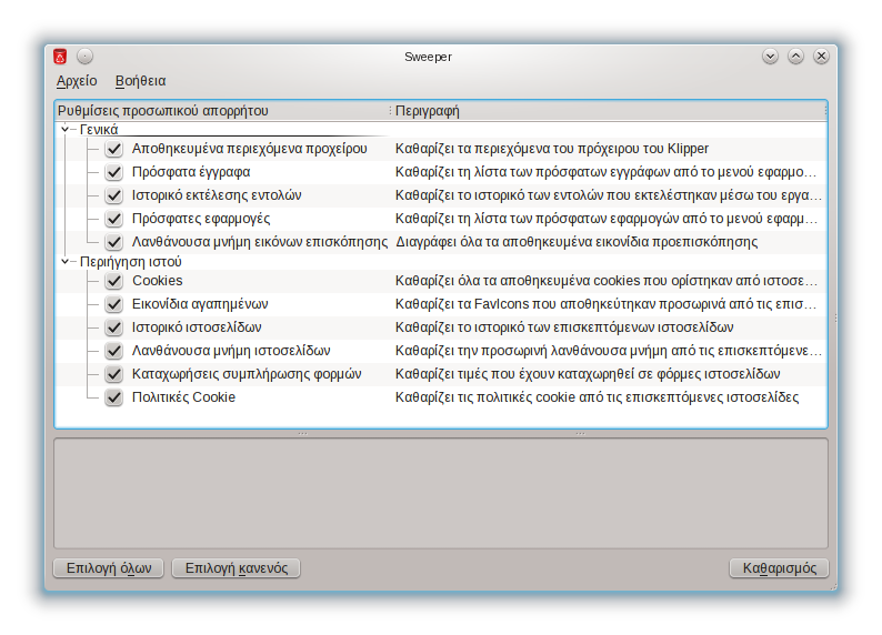 Το Sweeper βοηθά στον καθαρισμό μη επιθυμητών ιχνών που αφήνει ο χρήστης στο σύστημα.