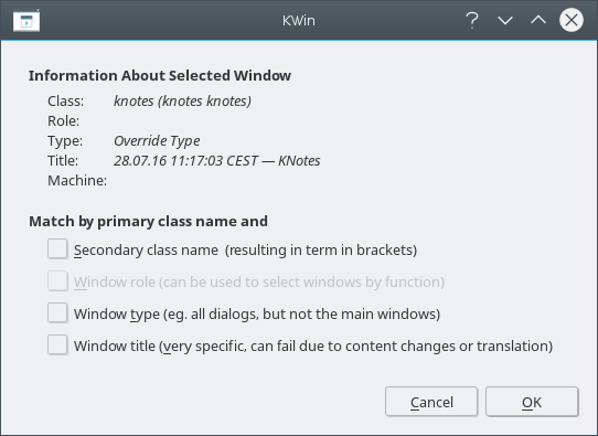 Use Detect Window Properties and select any sticky note window. Match only by primary class name so leave the check boxes unchecked - for additional information see window matching: