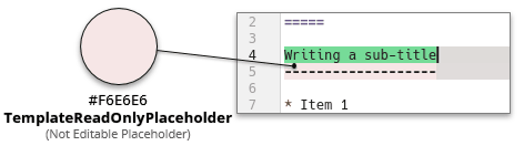 TemplatePlaceholder(Segnaposto modificabile)Questo colore viene usato dall'estensione dei frammenti di Kate per marcare un segnaposto su cui puoi fare clic per modificarlo manualmente. Per maggiori informazioni, vedi la documentazione dei frammenti di Kate.