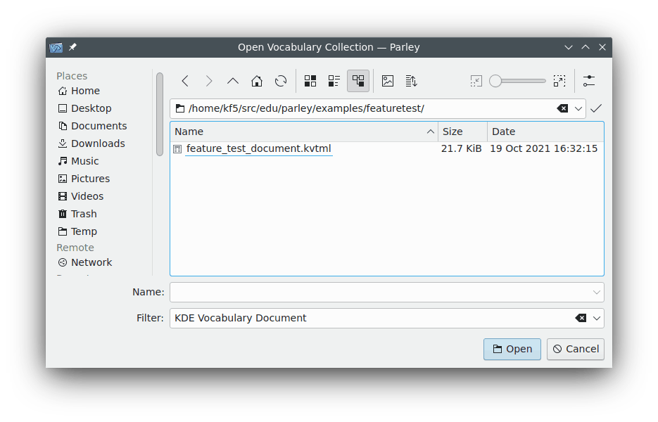 Na janela de seleção de arquivos, vá para a pasta que contém o arquivo de dados e selecione-o, clicando sobre ele. Dependendo do seu sistema, ou o arquivo abre imediatamente ou você terá que pressionar o botão .
