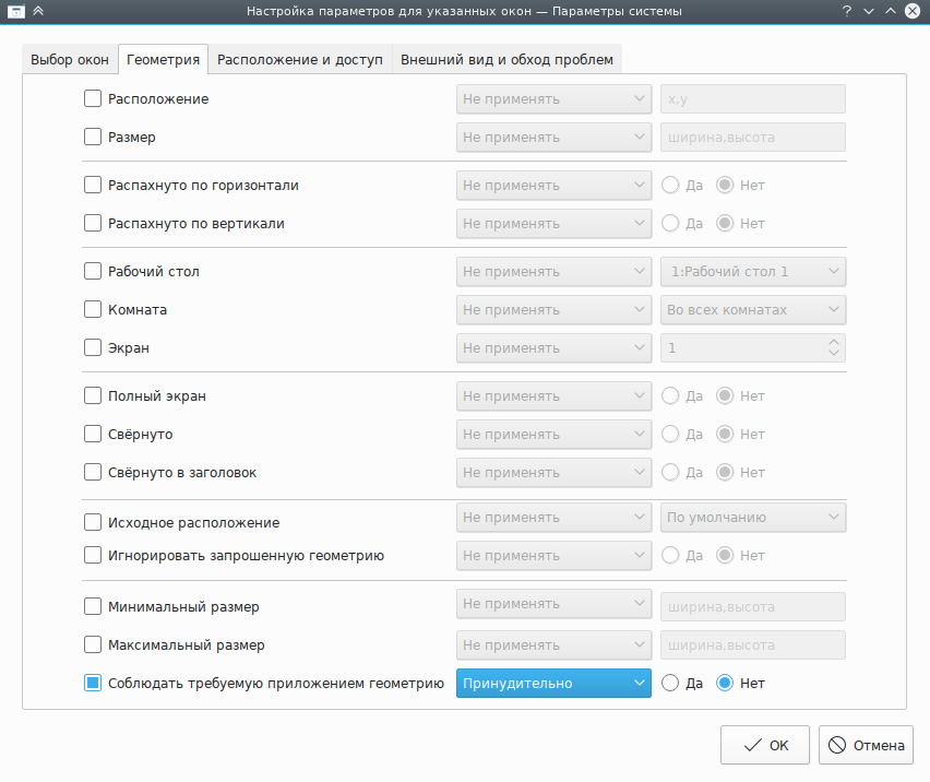 Процесс создания правил KWin показан на подробном примере, который может служить в качестве основы для нового правила.