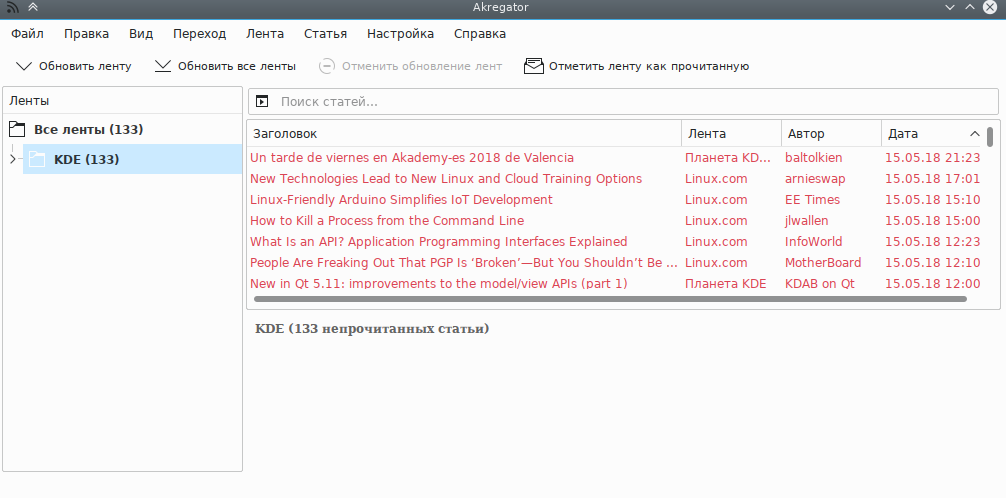 Запустите программу Akregator на Рабочем столе 2, определив для неё следующие размер и расположение: