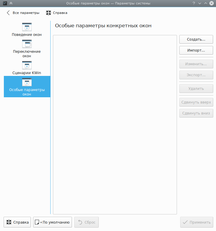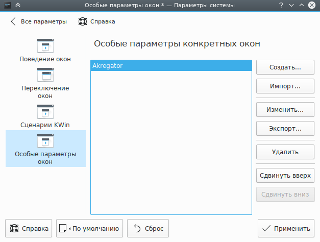 Нажмите кнопку OK (в окне из предыдущего этапа), чтобы вернуться к главному окну Правил KWin. В списке появилось новое правило и его описание: