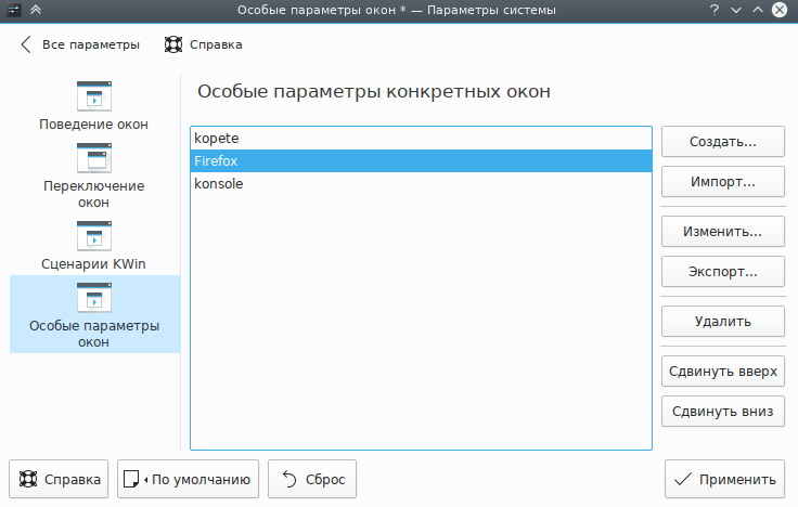 Глава 4. Редактор правил KWin