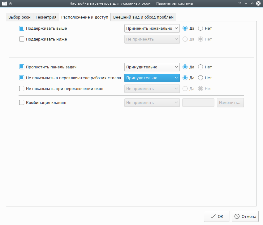 Для каждого правила задаются достаточно строгие критерии соответствия, поэтому не важен их порядок в списке в главном окне KWin (он не повлияет на обработку правил).