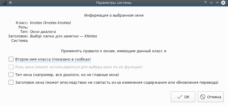 Нажмите кнопку Определение свойств окна и выберите любое окно заметки. Задайте соответствие только по главному имени класса, оставив флажки неотмеченными (дополнительные сведения доступны в разделе Выбор окон):