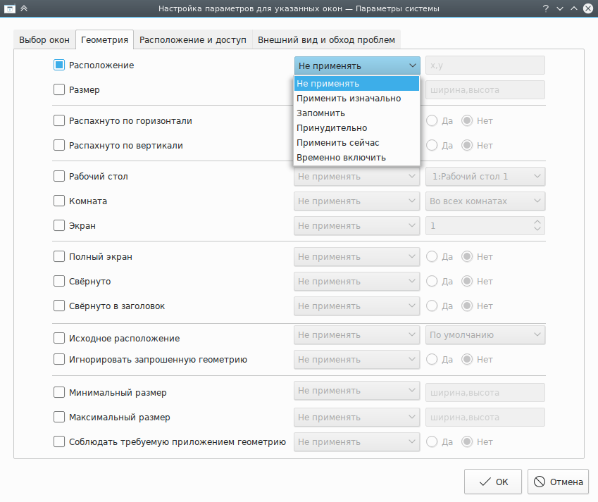 При выборе этих вариантов значение атрибута применяется один раз и отключается. Разница между ними состоит в том, что во время работы окна вариант Применить сейчас разрешает изменение атрибута, а вариант Временно включить — запрещает его до закрытия всех связанных окон.